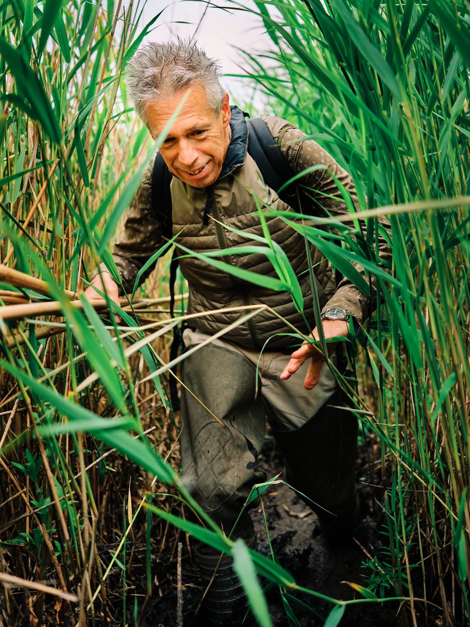 In subsequent years, Mennobart helped shape the Oostvaardersplassen and cyclical water level management in the wetlands. He also set up a system of monthly bird counts from the air, which has now provided over 40 years of data on the bird population in the IJsselmeer region. 'From the knowledge and experience I had built up in the meantime, I knew that wetlands benefit from good dynamics in the water level. That was not there at the time, so we saw that the natural value of the marsh was declining and counted fewer and fewer herons, spoonbills, ducks and geese. Then we first tried to keep the water level high in the winter and low in the summer, as nature always does. That turned out to be insufficient for large-scale restoration of the marsh in the Oostvaardersplassen. For the open waters of the Markermeer and the IJsselmeer - from the point of view of agriculture and water safety - we even instituted a reversed water level regime, with a level 20 centimeters lower in winter than in summer. After all, the farmer wants to be able to drain in the winter and collect water in the increasingly dry summers. And because all these areas are interconnected, this in turn affects the water level in Marker Wadden and the ecosystem that depends on it. Our research is going to provide more insight into this, but what we already know is that a few centimeters difference in depth is all determining which bird can walk there or which plant is there.