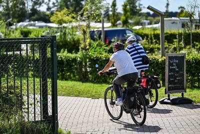 The Flevoland bicycle rest stops are specially designed to make life easier for cyclists, with facilities including toilets, bicycle pumps and water taps. This bicycle rest stop is located at Camping Waterhout, a family campsite near the city centre of Almere and on the edge of Nieuw Land National Park. Here you will find plenty of water, nature and tranquillity, but you can also get active on the water in a canoe or on a stand-up paddleboard, visit the animals in the animal enclosure and grab a bite to eat at Brasserie Tien.