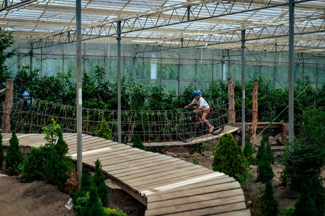 The Flevoland bicycle rest stops are specially designed to make life easier for cyclists, with facilities including toilets, bicycle pumps and water taps. This bicycle rest stop is located at a fully covered indoor mountain bike track measuring no less than 4 km, which has been constructed in a glass greenhouse. Outside, there is also a pump track and airbag landing area. Indoor Mountainbike has a catering facility where you can enjoy coffee, lunch and BBQ during opening hours.