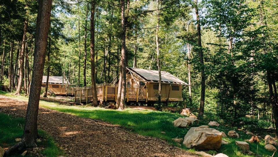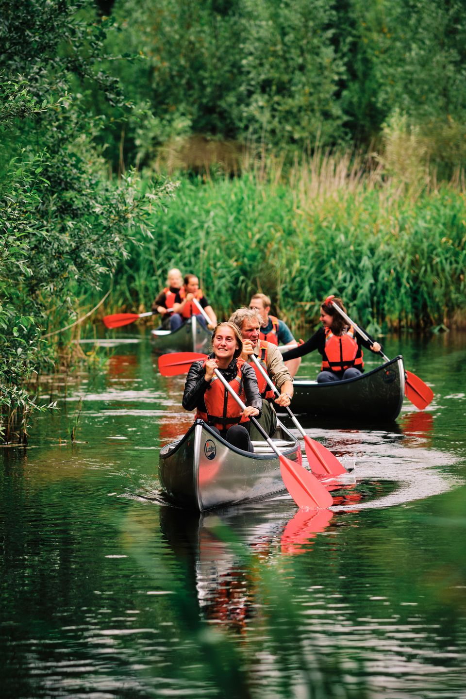 zoveel mogelijk via de slenk met een kano van en naar hun verblijfslocatie gaan. Zij kunnen hun auto parkeren op het parkeerterrein aan de Buizerdweg. De camping krijgt een natuurlijke uitstraling en is ingericht op verschillende vormen van kamperen. Er komen trekkersplaatsen waar mensen hun eigen tent kunnen opzetten. Daarnaast wordt er verblijfsrecreatie aangeboden in permanent opgestelde tenten (tenthuisjes) van verschillend types en er komen houten ecolodges, eveneens in verschillende typen. Er komt een centrale ontvangstgebouw waarbij een kleinschalige zwemvoorziening komt, eveneens kleinschalig, een wellness bestaande uit 2 barrelsauna’s (tonsauna’s), een Fins bad en 2 buitendouches. De totale camping is gesitueerd op 35 hectare bos, de campingplaatsen zijn daardoor ruim. De camping is alleen geopend tijdens het kampeerseizoen, in de wintermaanden is de camping gesloten. Het terrein waarop de camping wordt gesitueerd blijft openbaar toegankelijk.