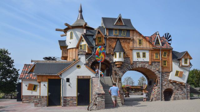 Je komt oren en ogen tekort bij Hans & Grietje: bewegende tafels, behekste vloeren, kamers ondersteboven en magische machines … er is van alles te ontdekken in het restaurant! Als je zit te eten kan het zomaar gebeuren dat je ineens de pannenkoek van de buurman voor jouw neus hebt. Overal vind je touwtjes en knoppen om van alles in beweging te zetten: het grote heksenorgel, een behekst plafond, een vloer die scheef gaat staan, tafels die draaien en kantelen … alles is mogelijk! Glij met één van de indoorglijbanen naar de grote speelkelder met stapstenen, klimheuvel en allemaal leuke spelletjes aan de muur. Maar pas op! De heks slaapt ook in de speelkelder, zorg dat je haar niet wakker maakt!