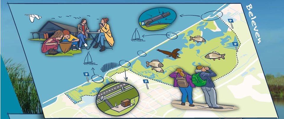 Bijvoorbeeld bij Kop Knardijk waar, de strekdam heringericht wordt met trappartijen waar je op kunt zitten. Op mooie zomerdagen zie je daar nu al de campers en klapstoeltjes staan. We sluiten dus aan op de behoeftes van de bezoeker. Ook richten we de parkeerplaats in en treffen we verschillende kleinere maatregelen zoals fietsrustpunten en informatiepunten. Bij Westvaarders zorgen we dat (de omgeving van) het nieuwe gemaal te beleven is. We onderzoeken nog hoe dit eruit komt te zien.